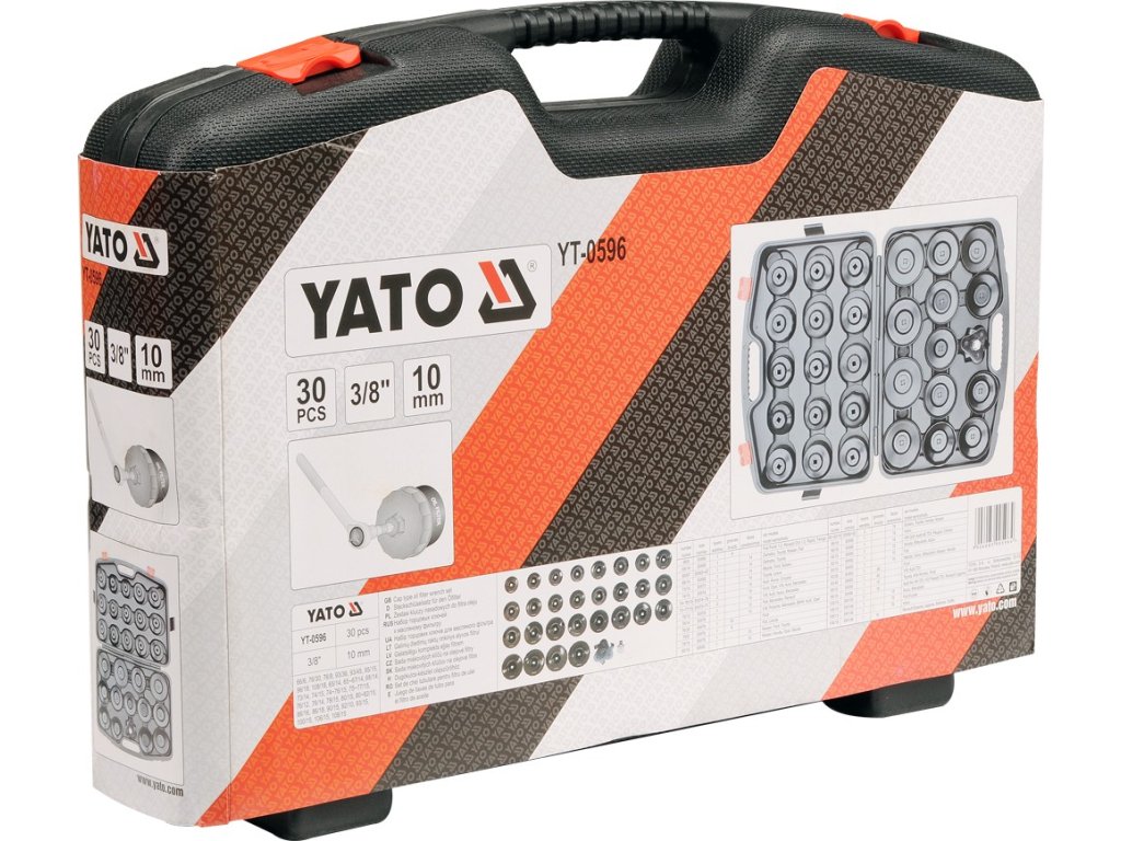 Jednotlivé kľúče majú zakončenie veľkosti 3/8". Súprava obsahuje 28 miskových kľúčov, nastaviteľný kľúč s rozsahom 65 - 120 mm a adaptér 3/8" - 1/2".