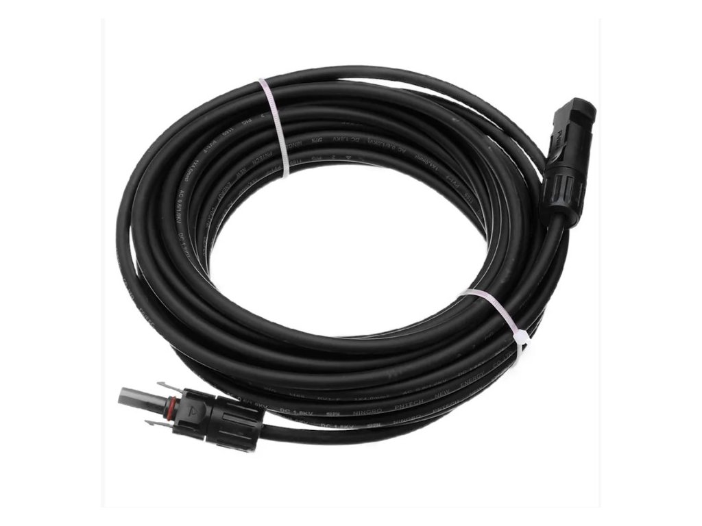 Solárny kábel s prierezom 6mm2 a celkovou dĺžkou 15m. Na koncoch kábla je nalisovaný konektor MC4 kompatibilný (1x + konektor a 1x - konektor).